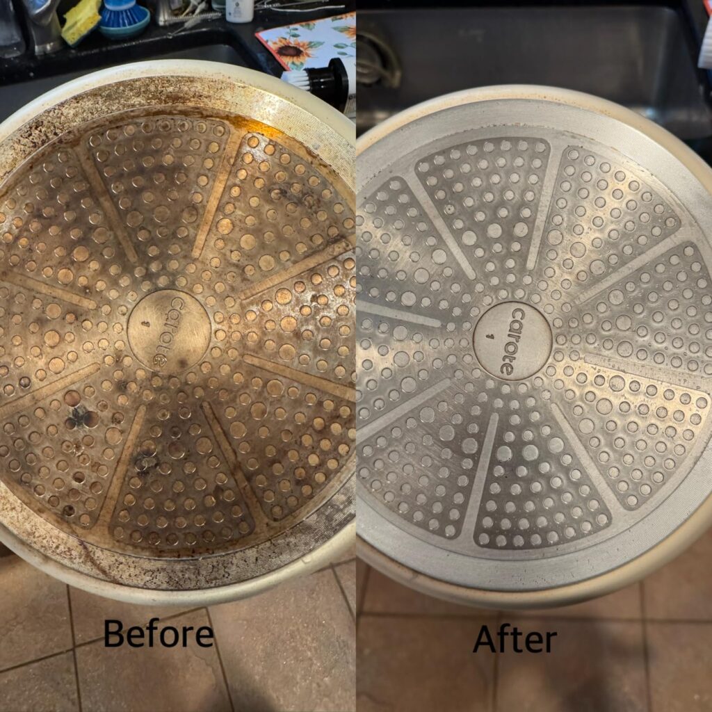 You’ll still do a bit of scrubbing, but you’ll notice the difference — the dirt comes off with less effort, and the surface looks cleaner after one try.
